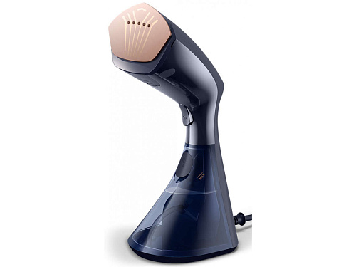 Этот аппарат становится уверенным участником рейтинга по многим причинам: набирает огромное количество пользовательских отзывов и высоких оценок, имеет удобную конструкцию с крепким хватом и стильный розовый корпус, который поднимет настроение. Модель оснащена в меру вместительным бачком для жидкости на 140 мл, этого хватит примерно на 10 минут отпаривания тонких тканей. С более плотным твидом, льном и в некоторых случаях хлопком агрегат не способен справиться, для таких случаев лучше подумать о стационарной модели. Мощность отпаривателя заявлена на 1200 Вт, предусмотрен регулятор подачи пара, с которым вы можете корректировать силу струи.