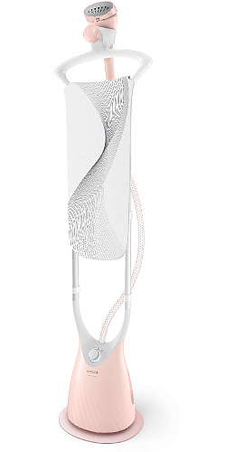 Модель от популярного бренда позволяет отпаривать вещи не только традиционным для отпаривателей способом – вертикальным, но и горизонтальным. Телескопическая стойка позволяет корректировать ее под рост пользователя. Предусмотренная в комплекте удобная насадка-щетка позволит работать с ворсистыми вещами и мягкими игрушками. Модель оснащена длинным паровым шлангом на 1,3 метра, а 1,6-метровый сетевой шнур позволит работать немного вдали от розетки. Отпариватель надежно защищен от образования накипи, благодаря этому решению прибор прослужит вам гораздо дольше. Наибольшая подача пара составит 35 г/мин, этого будет достаточно, чтобы быстро и эффективно обработать самые сложные складки.