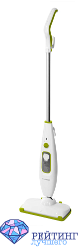 Паровая швабра Starwind SSM5330 имеет съемный бак для воды объемом четыреста миллилитров. На его разогрев тратится до двадцати пяти секунд, при этом потребляемая мощность составляет 1300 Вт. Управляется устройство кнопками на корпусе, а весит всего два килограмма, поэтому вам будет не тяжело переносить его по квартире. Кабель для подключения в электрическую сеть пятиметровый, что удобно для уборки большой площади без переключения между розетками. Рукоятка имеет удобный хват, удлиняющая трубка легко фиксируется, моющая головка имеет шарнирное строение, поэтому позволяет забраться во все углы, под мебель и кухонный гарнитур. Конструкция складная и занимает мало места при хранении. Подача пара мощная, бесперебойная. Для лучшей уборки ковров в комплекте поставляется специальная рамка, а для удобной заправки аппарата в наличии мерный стаканчик. Как и все остальные модели, эта станет хорошим помощником в уборке всего дома, оберегая вас от использования химикатов и оставляя время на личные занятия. Все болезнетворные бактерии, вирусы и грибки уничтожаются высокой температурой подаваемого пара. Покупатели положительно отзываются о товаре. Хвалят его за длину кабеля, простоту управления, легкую конструкцию, хорошую маневренность. При этом многие покупали ее в подарок, а те, кто пользуются сами, не жалеют о своем приобретении.