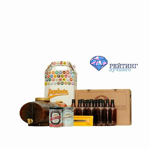 Одно из пользующихся спросом дизайнерских решений для мини-пивоварен. Емкость для брожения оформлена в виде бочонка по дерево. Выглядит привлекательно и благородно. На самом деле бак выполнен из пластика. Компактный (всего девять литров) агрегат не займет много места. Оригинально смотрится на кухне. Гарантирует восхищенные отзывы. В комплекте есть гидрозатвор, термометр, экстракт жидкого типа, ложка для размешивания и пластиковые бутылки. Предполагается естественная карбонизация. В комплект пивоварни не включены дополнительные баллоны с углекислым газом. Хороший набор для начинающего пивовара.