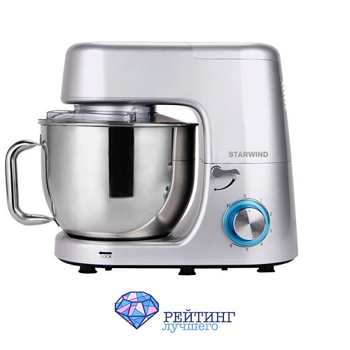 Продукция STARWIND производится в Китае на заводах, которые сотрудничают с известными производителями бытовой техники. Модель SPM8183 находится на девятом месте рейтинга лучших планетарных миксеров. В комплект входит миксер, чаша объемом 7 л, три стандартные насадки и одна силиконовая лопатка. Чаша выполнена из нержавеющей стали и имеет ручку, для удобства и простоты использования. Мощность модели 1600 Вт. Работает на 6 скоростях с двусторонним вращением. Импульсный режим присутствует. Отличается миксер низким уровнем шума при работе. При включении регулятор скоростей подсвечивается голубым светом. STARWIND SPM8183 имеет все необходимые сертификаты, а качество устройства подтверждено годовой гарантией производителя.