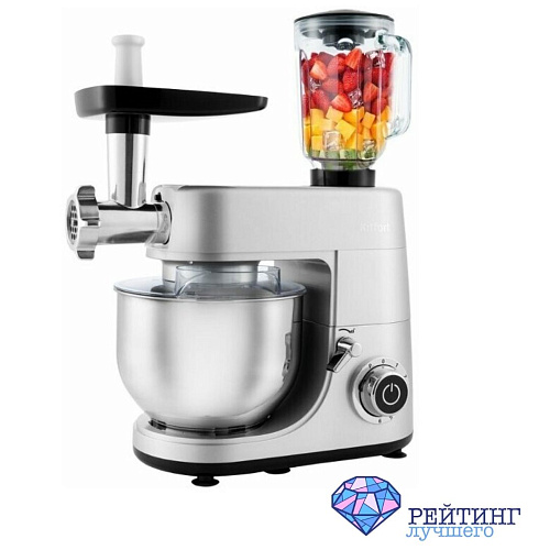 Многофункциональный и мощный планетарный миксер Kitfort КТ-1371 занимает десятое место в рейтинге лучших планетарных миксеров. Модель дополнительно оснащена мясорубкой и блендером. Благодаря этому миксер легко превращается в кухонный комбайн 3 в 1. Кроме того, что он может легко взбить, перемешать, замешать тесто различной плотности, он также может измельчить и пюрировать различные ингредиенты. В дополнение сможет приготовить фарш из мяса или рыбы. Объем чаши миксера - 6 л. В чаше имеется специальная выемка. За счет нее миксер может легко взбить 1 яйцо. В устройстве есть микропроцессор, который контролирует нагрузку на мотор. Если мотор устройства перегружен, то во избежание перегрева миксер самостоятельно отключится. Мощность миксера 1000 Вт. Весит модель 9 кг. Для удобной установки на рабочую поверхность, производитель предусмотрел присоски на корпусе и длину сетевого шнура – 1 м. В комплекте есть сепаратор для яиц.