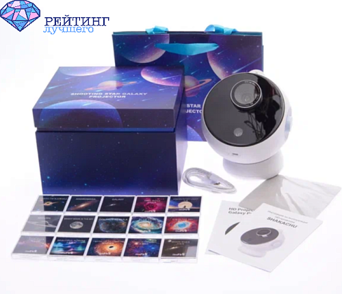 Это и ночник звездное небо, и музыкальный проектор звездного неба с возможностью смены проекций. В комплекте шесть кассет Shakachu Vega с изображениями планет, туманностей и звездных скоплений. Это позволяет не только наслаждаться атмосферой космоса, но и изучать астрономию.