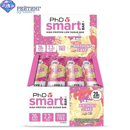PhD Nutrition - это бренд спортивного питания, которому вы можете доверять. Он выпускает продукты, предназначенные для восстановления до и после тренировки, и поэтому пользуется огромным спросом. Его протеиновый батончик Smart Bar содержит 20 граммов белка и около 2 граммов сахара. Он также доступен в различных вкусах, чтобы удовлетворить ваши желания, включая карамель, печенье и сливки, брауни и праздничный торт. Если вы любите сладости, то вам понравится вкус этого продукта. Батончики Smart Bar имеют хорошую репутацию благодаря своему хорошему вкусу, сохраняя при этом целостность питания, что делает их предпочтительным питанием для требовательных спортсменов. Все используемые ингредиенты являются метаболически здоровыми, так как не содержат консервантов и вредных соединений. К сожалению, это не означает, что они подходит для людей с пищевой аллергией.