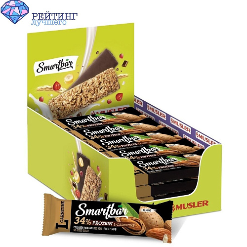 Smartbar стремится поставлять продукты с высокой плотностью питания в удобном формате. Вся их линейка протеиновых батончиков сертифицирована и не содержит глютена и искусственных ингредиентов, что делает их фантастическим выбором для спортсменов. Бренд ориентирован на качество, долговечность и вкус. В этом наборе содержится 34 г белка на 100 г продукта, а также 10 г жиров и 11 углеводов. Идеально подходящие для нужд до и после тренировки, эти батончики являются прекрасным источником L-карнитина. необходимого для сжигания жира. Они могут помочь вам дольше чувствовать себя сытым, что особенно важно при похудении. Хорошо и то, что вам будут доступны разные вкусы на выбор.