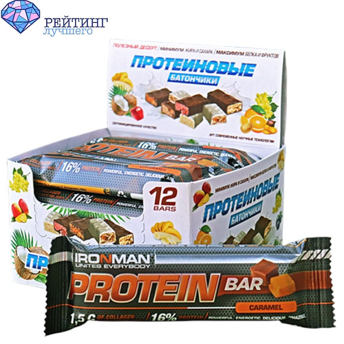 6. IRONMAN Protein Bar с коллагеном, 50 г, 12 шт.