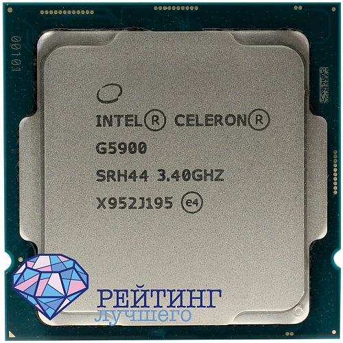 Процессор Celeron G5900 LGA1200 подключается через разъем LGA1200. Двухъядерный линейки Comet Lake-S, техпроцесс - 14 нм. Частотные характеристики следующие: тактовая 3,4 ГГц, два потока, двухканальная память DDR4 с частотой 2666 МГц и максимальным объемом 128 Гб. Имеется встроенный контроллер памяти с пропускной способностью 41,6 Гб/с. За графику отвечает встроенное видеоядро UHD 610 с параметром 1050 МГц. Кэш представлен L1, L2 и L3 с объемами 64 Кб, 0,5 Мб и 2 Мб соответственно. Тепловая мощность составляет 58 Вт, во время работы должна быть температура не выше 100 °С, количество каналов PCI Express в максимуме равно 16. Поставляется как BOX с вентилятором для охлаждения за 5034, и как ОЕМ без вентилятора стоимостью 4280, в комплект также входит термопаста. Хороший вариант для офисных компьютеров.