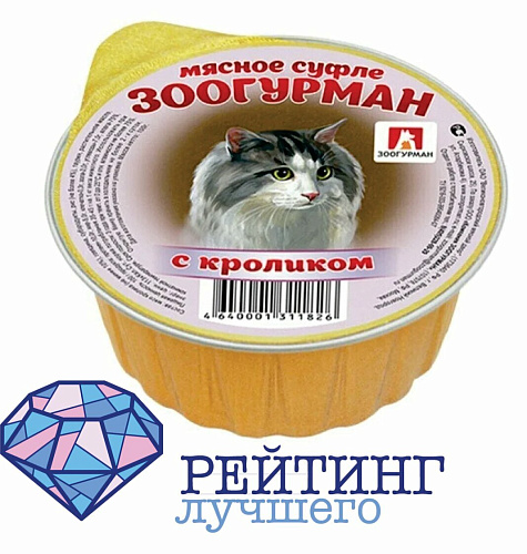Начнем наш рейтинг с влажного корма для котов бренда Зоогурман. Ламистера содержит сто граммов вкусного суфле. За его основу взято мясо кролика, поэтому оно обладает особой нежностью. Продуктом следует кормить животного в возрасте от года до шести лет. В состав также входят говядина, субпродукты, рис в качестве наполнителя и загустителя, растительное масло и таурин. Дозировка рассчитывается исходя из тридцати пяти – сорока пяти граммов суфле на килограмм веса животного. Перед кормлением производитель рекомендует довести суфле до комнатной температуры: так у вашего любимого питомца не будет проблем с желудочно-кишечным трактом. Покупатели высоко оценили товар, отметили, что он самый дешевый из имеющихся на рынке влажных хороших кормов.