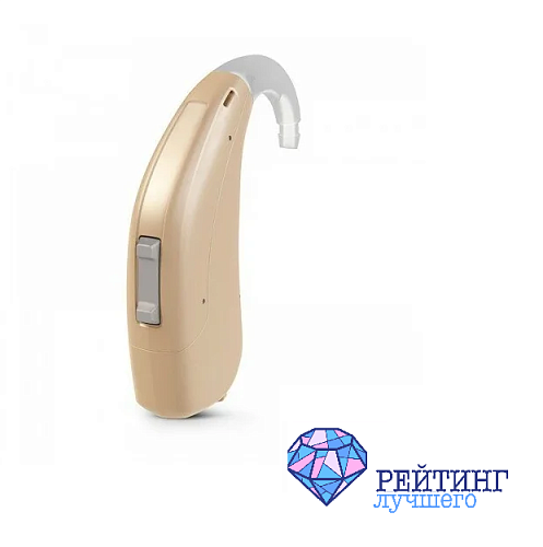 Эксперты характеризуют эту модель слухового аппарата как сверхмощную. Прибор использует цифровую технологию обработки звука, что обеспечивает очень хорошее звучание. Это устройство используют для тех пациентов, у которых отмечается сильная потеря слуха. Отличительной особенностью данной модели является то, что здесь предусмотрена система звукового профиля. Такой особый современный способ настройки прибора позволяет учитывает индивидуальные особенности течения болезни у человека. Для настройки используется 4 кнопки, имеющиеся на корпусе устройства. Сам процесс настройки довольно прост и не доставляет никаких сложностей. Данная модель слухового аппарата имеет компактные размеры и довольно привлекательный дизайн. Прибор покрыт нанопокрытием для того, чтобы не терял свой привлекательный внешний вид. Устанавливает за ухом, для это предусмотрено особое крепление. Предусмотрено большое количество полезных опций, среди которых функция шумоподавления и опция подавления обратной связи.