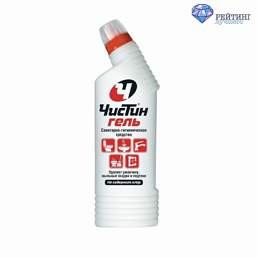 Эффективный продукт для универсального использования от отечественного производителя. Обладает дезинфицирующим и отбеливающим и обеззараживающим эффектом за счёт своего состава. Основной активный компонент - хлор (не более 5 процентов), а также стандартные ПАВ-ы. Использование для унитаза - нанести под ободок и оставить на ночь, однако подходит для стандартного мытья. Имеет цитрусовый аромат, чтобы не было резкого запаха хлорки. Представлен в стандартном объёме 750 мл, расходуется в обычном режиме.