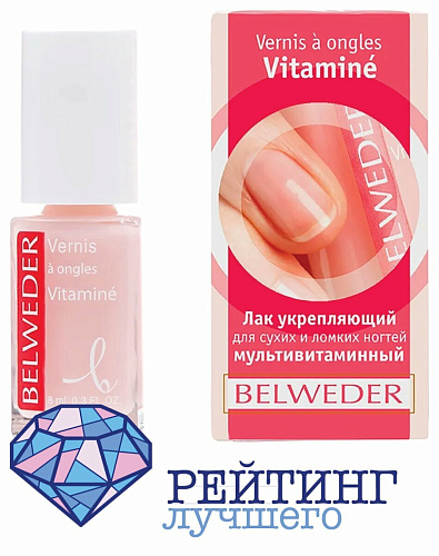 Лак для укрепления ногтей, склонны к ломкости и сухости, бренда Belweder представлен в привычном флаконе. На колпачке крепится аппликатор для аккуратного и точного нанесения. Во флаконе находится восемь миллилитров средства, чего хватит на восстановительный период после ношения шеллака. При регулярном применении Belweder мультивитаминный повышаются стойкость ноготков к обламыванию и расслаиванию, а также их эластичность. Он доводит уровень влажности до нормального значения у здоровых и неповрежденных ноготочков – около двенадцати – четырнадцати процентов. Также оказывает механическое укрепление ногтевой пластины за счет увеличения ее толщины. В состав не входят вредные и токсичные вещества, такие как толуол и формальдегид. На чистые и сухие ногти нанесите один – два слоя средства и дождитесь полного высыхания. Его цвет практически прозрачный, на свету видны небольшие перламутровые частицы. Покупательницы оставляют положительные отзывы о товаре. В качестве достоинств выделяют красивый блеск, эффективность, стойкость покрытия, отсутствие резкого запаха.
