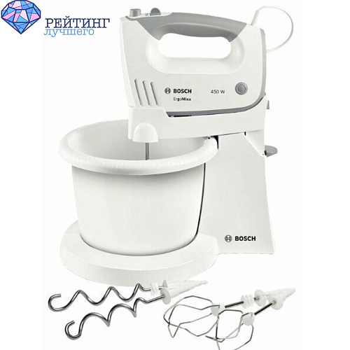 В стандартную комплектацию, как правило, входят 2 вида насадок, пара венчиков и крюки для замеса теста. Такие кулинарные девайсы бывают небольшого размера и весят около одного килограмма. Они подходят для использования в любой ёмкости, понятны и легки в управлении. Обычно ручные тестомешалки имеют от 3 до 5 скоростей вращения и дополнительный турбо режим. При этом они отличаются невысокой мощностью, до 400 Вт (в дорогих моделях мощность может доходить и до более высоких значений).