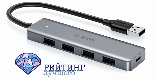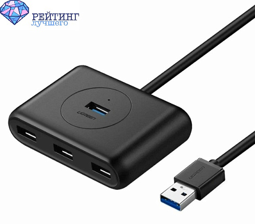 Более усовершенствованные горизонтальные порты USB имеются у UGREEN (50985) – их четыре и все они версии 3,0, что обеспечивает высокую скорость передачи данных до 5 Гбит в секунду против 480 Мбит у предыдущего хаба. Но и цена на такой аксессуар становится больше. С такой скоростью вы можете перебросить фильм в хорошем качестве всего за несколько секунд, только убедитесь, что разветвитель вставлен в порт такой же версии в вашем ПК. Кроме того, чтобы не было задержек и помех в работе, хаб наделили функцией мультиэкранирования, обеспечивающей стабильность. Еще одна защитная опция представлена наличием преобразователя, который предотвратит перегрузку и чрезмерное напряжение. На корпусе концентратора находится светодиодный индикатор. USB – концентратор имеет широкую совместимость с операционными системами, включая самый распространенные: Windows, Linux, Mac OS. В него можно подключать различные внешние устройства: мышь, клавиатура, микрофоны, флешки, плееры, наушники, принтеры, жесткие диски – главное соблюдать совместимость разъемов – подойдут версии 2,0, 1,2 и 1,1. На торце имеется порт Micro Input. Если вы захотите использовать удлинительный кабель, то его длина не должна превышать один метр. Также при использовании высокопроизводительных аксессуаров, таких как диски SSD, может потребоваться дополнительная мощность, получаемая от электросети. Покупатели хорошо отзываются о товаре, отмечая, что это хороший аксессуар, который сохраняет работоспособность при включенных трех жестких дисках.