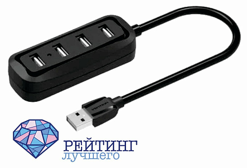 Еще один недорогой USB – хаб в нашем списке. Черный цвет корпуса, длина кабеля составляет пятнадцать сантиметров, поэтому для удобства лучше расположить его на рабочем столе. Подключать внешние устройства нужно вертикально, поэтому берите в расчет и место под разъемы и кабеля, торчащие из него. Всего гнезд четыре, все одинакового типа А 2,0. Пропускная способность интерфейса аксессуара равна 480 Мбит в секунду. Гарантия от производителя на пассивный USB – разветвитель на один год, минимальный срок службы также двенадцать месяцев. Покупатели оставляют положительные отзывы о товаре. Хвалят его за хорошую и длительную работу без дополнительного питания даже при включении нескольких внешних носителей.