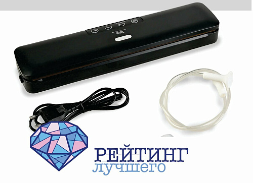 Начнем наш рейтинг с самой простой модели, но при этом не менее результативной Vacuum Sealer Z ZKFK-1. Обладает достаточно высокой мощностью 90 Вт или 60 КРА, производительность при этом 20 литров в минуту. Создаваемый вакуум имеет давление 0,6 бар. Время запайки занимает всего от двенадцати до шестнадцати секунд в зависимости от пакета, при этом после включения аппарат готов к работе уже через полминуты. Хранение продуктов под вакуумом даже в морозилке способствует сохранности их внешнего вида, запаха, вкуса и полезных веществ. Из таких продуктов будет приятно готовить блюда, ведь они будут всегда как будто вы их только принесли домой. Пользоваться им просто, и можно разобраться даже без инструкции: помещаете продукт в пакет, край вставляете в прибор, нажимаете кнопку, тянете за клапан откачки в течение пятнадцати секунд и все готово. Такой формат продлевает сроки хранения продуктов в холодильной камере: мяса до двух недель, рыбы до недели, готовых мясных блюд до трех недель, готовых каш до пары дней, овощей до полутора недель и фруктов до трех недель, в то время как все перечисленные продукты не могут храниться дольше недели. Габариты весьма скромные для такой полезной вещи и составляют 4,3х6,5х37 сантиметров, а вес не превышает четырехсот граммов. В комплект входят пять пакетов, которые совместимы с аппаратом. Можно использовать другие с максимальной шириной упаковочного шва не превышающей 29 сантиметров. Покупатели оставляют положительные отзывы о товаре. Хвалят его за работоспособность, безотказность и не отмечают ни одного недостатка.
