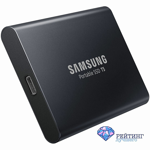 Продолжает рейтинг лучших - монолитный портативный внешний накопитель SSD Samsung T5. Поставляется в комплекте с двумя USB проводами, что дает возможность контакта с ПК, планшетом, смартфоном на Android. Длина устройства 74 мм, ширина – 57 мм, толщина – 1 см. Корпус выполнен из алюминия с двумя пластиковыми вставками на гранях. Края корпуса закругленные. Цвет – синий или черный на выбор. Вес 51 г. Единственный разъем внешнего накопителя – USB 3.2 Gen 2 Type-C. Выпускается устройство с объемом памяти – 250 Гб, 500 Гб, 1 Тбайт или 2 Тбайта. Скорость чтения – 500 Мб в секунду, а скорость записи данных – 483 Мб в секунду. В устройстве предусмотрена опциональная парольная защита доступа, благодаря аппаратному симметричному алгоритму блочного шифрования - AES 256-bit.