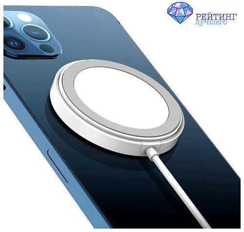 Беспроводная сетевая зарядка является отличным выбором для новомодного 12 iPhone, так как позволяет его заряжать в течение короткого времени. Модель прекрасно справляется со всеми возложенными на нее задачами. Коннектор USB-C, установленный в зарядке, намного удобнее предшественника (USB-A). Обладает приятным ценником для приобретения, всего около 1500 рублей в зависимости от продавца. В составе комплекта предусмотрены база для беспроводной зарядки, съемный кабель. В зарядном устройстве предусмотрен 1 разъем, также реализована поддержка быстрой зарядки. Относится к типу зарядных устройств MagSafe, которые набирают популярность в последнее время. Мощность зарядки составит 10 Вт, в целом устройство обладает компактными размерами, что позволяет носить его с собой где угодно.