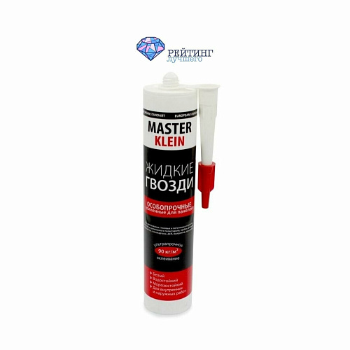 Упакованные в картридж весом четыреста сорок грамм жидкие гвозди из синтетической смолы подходят как для внутренних, так и для внешних работ. Обладают устойчивостью к низким температурам, не боятся воды и влаги. Минимальные и максимальные температуры нанесения и эксплуатации совпадают. Составляют интервал от минус десяти до плюс тридцати градусов по шкале Цельсия. Первоначальная фиксация происходит за полторы-две минуты. У вас есть не более пятнадцати минут на корректировку. Окончательное скрепление достигается через двое суток. Склеенные жидкими гвоздями изделия выдерживают вес 90 кг/м². Подходят для объектов из: дерева, камня, кирпича, гипсокартона, кафельной плитки, ДСП, пенополистирола, гипсокартона, МДФ. Не скрепляют изделия из полиэтилена, полипропилена и аналогичных материалов. Обратите внимание на тот факт, что клей относится к ряду безопасных для здоровья. После высыхания жидкие гвозди приобретают белый цвет. При желании можно окрасить водно-дисперсионной краской.