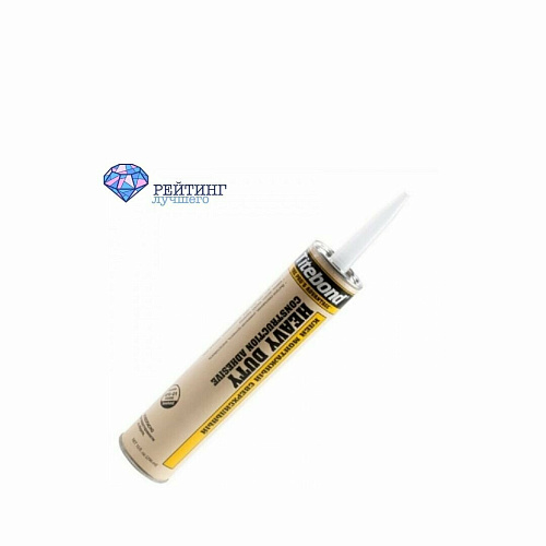 Если вас в первую очередь интересует максимальная сила фиксации, то стоит присмотреться к этому варианту жидких гвоздей. 240 кг/м² - такая цифра характеризует первоначальную силу схватывания. Клей на полимерной основе упакован в картридж объемом двести девяносто миллилитров. Подойдет для соединения изделий из: камня, кафеля, дерева, металла, пластика, камня и кирпича. Для первоначального схватывания требуется до пяти минут. Время полной фиксации составляет двадцать четыре часа. Подходит для внутренних и внешних работ.