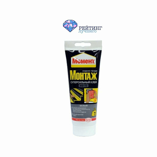 1. Монтажный клей Момент Монтаж Суперсильный МВ-70 (250 г). - универсальный клей на водной основе. Оптимальное соотношение цена-качество.