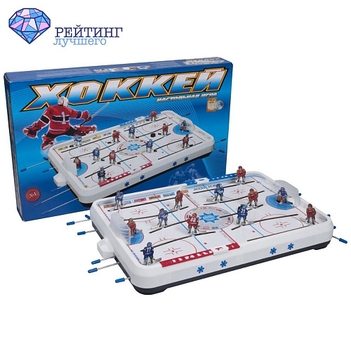 Это интерпретация старого доброго советского хоккея не оставит равнодушным никого, кто увлекается спортом. В душевной компании друзей или в тесном семейном кругу, вы сможете почувствовать настоящий боевой азарт и разбудите свой лидерский дух. Играть можно с детьми от 6 лет. Размеры игры достаточно большие 71/45 см, а высота бортиков 9 см. Общий вес составляет 2,8 кг. Фигурки хоккеистов могут двигаться прямолинейно и вращаться вокруг своей оси. В погоне за шайбой и попытках забить гол сопернику вам ничего не помешает, так как в игре нет “мертвых” зон. В комплектации предусмотрен механический счетчик очков. Срок годности 10 лет. В комплекте есть запасная шайба и по одной фигурке в каждую команду. Конструкция и материал уступают по качеству, поэтому нужно беречь от ударов. При сборке игрушечных хоккеистов нужно устанавливать осторожно и придерживать каркас. Срок службы 6 месяцев.