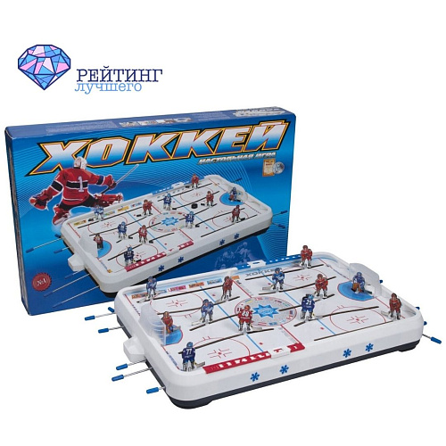 Данная игра выпускается компанией ОмЗЭТ и представляет собой классический вариант. Фигурки хоккеистов плоские, но за счет 3d оформления выглядят довольно реалистично и объемно. В каждой команде предлагается по 5 хоккеистов с учётом вратаря. Цветовое решение дизайна в современном стиле. Форма игроков синяя и красная. А поле белое и расчерчено разметкой. В комплекте идут счетчики голов, которые нужно проставлять вручную. Всего их два для каждой команды. Рычаги для управления вращаются легко и без помех. Хоккеисты плавно двигаются по полю и вокруг себя. Траектория прямолинейная. Изготовлены из хорошего материала. Размеры поля большие 64 на 44 см. Для удобства участия в игре, лучше разместить её на отдельном столе или другой ровной поверхности.