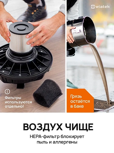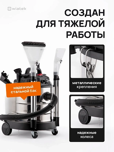 Wiatek WL112 — не просто пылесос, а полноценный клининговый центр для дома, автомобиля и придомовой территории. Устройство объединяет функции нескольких приборов и справляется с самыми разными задачами:
