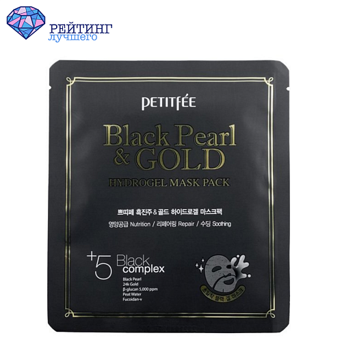 9. Petitfee Гидрогелевая маска для лица с черным жемчугом и золотом, 32 г