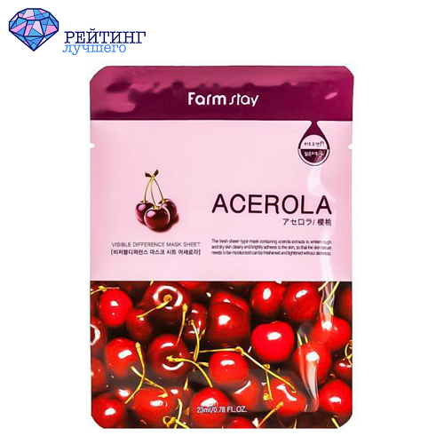 Farmstay Visible Difference Mask Sheet Acerola - это отличный способ вернуть молодость и сияние коже лица. В ее состав входит экстракт ацеролы, который борется с неровностями и воспалениями, разглаживает морщины и придает эластичности, а также касторовое масло, помогает осветлить пигментные пятна. Этот продукт не содержит вредных химических соединений и благотворно воздействует на все типы лица. Использовать его рекомендуется не реже 2 раз в неделю.