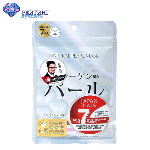 14. Japan Gals натуральная маска с экстрактом жемчуга, 7 шт.