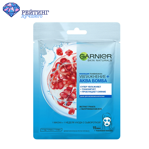 17. GARNIER тканевая маска Увлажнение + Аква Бомба, 32 г