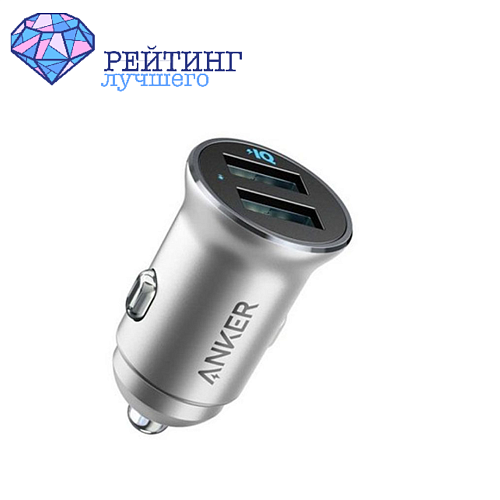 Открывает наш рейтинг уникальное устройство от популярного бренда Anker. Автомобильная зарядка Power Drive 2 Alloy представлена в серебристом исполнении и радует большим функционалом. ЗУ имеет два USB-порта, что позволяет заряжать несколько устройств. Например, супруги во время поездки могут заряжать свои смартфоны одновременно.