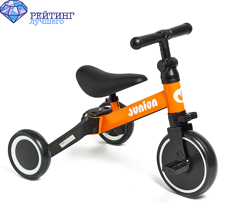 • Самый универсальный: Детский беговел-трансформер 3 в 1 JUNION Stepni – растёт вместе с ребёнком и превращается из самоката в полноценный велосипед.