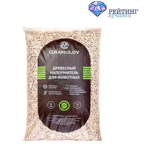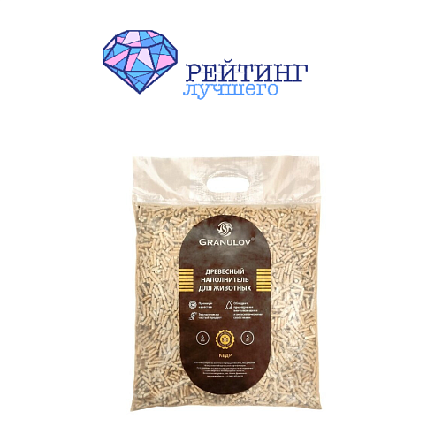 Еще один наполнитель бренда GRANULOV занимает десятую строчку нашего рейтинга. В этот раз этот наполнитель изготовлен из чистого кедра. Этот продукт относится к линейке премиум-класса. Имеет улучшенные характеристики. Создан для обеспечения чистоты в доме и комфорта для питомцев.