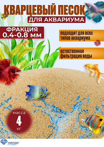 Кварцевый песок является нейтральным и безопасным материалом для условий домашних водоемов, так как он экологически чистый. Его желтый цвет придает аквариуму теплый и приятный вид. Производитель гарантирует, что грунт чистый, и не содержит нежелательных примесей. Вы можете не переживать что изменится химический состав воды и ваши обитатели пострадают.