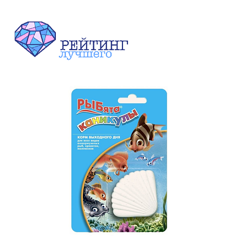 2. «Каникулы» от «РЫБята» – оптимальное решение для тех, кто ищет корм для длительного отсутствия дома. Гипсовая ракушка, которая медленно растворяется, обеспечивает рыб питанием на протяжении двух недель, а чистота воды при этом остается на высоком уровне. Этот продукт стал настоящим спасением для заботливых владельцев аквариумов, позволяя им спокойно уезжать в отпуск, не беспокоясь о своих водных питомцах.