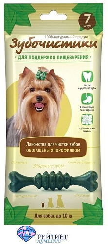 Косточки с хлорофиллом – это уникальное и полезное угощение для вашего питомца. Подходят для собачек весом до 10 килограммов. В составе продукта содержится мясо, овощи, мята, дрожжи и самый интересный компонент – хлорофилл.