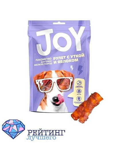 Угощение от бренда JOY представляет собой фруктовую палочку, завернутую в свиную шкурку и утиное филе. Это лакомство предназначено для собачек мелких пород, но и более крупные представители пород с удовольствием полакомятся данным деликатесом. Отлично подходит и как для угощения, так и для поддержания здоровья зубов. Ну, и, разумеется, этими палочками можно мотивировать любимца на тренировки и выполнение всяких команд хозяина.