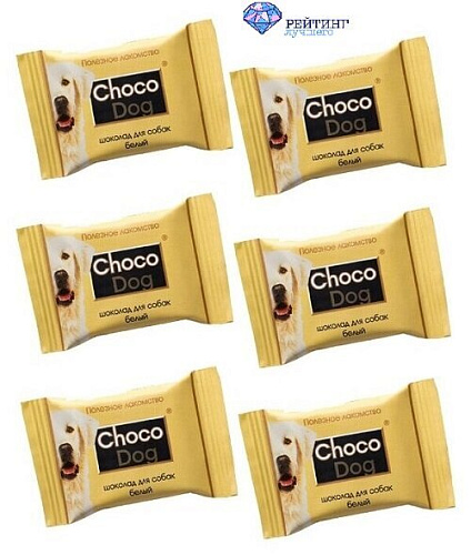 Замыкает наш рейтинг лучших вкусняшек для собак - белый шоколад CHOCO DOG, от бренда VEDA. Это уникальный продукт, в котором сочетается изысканный вкус и забота о здоровье вашего пушистого друга. Вкусняшка представляет собой шоколадные батончики весом 15 граммов каждая. В упаковке 6 штук.
