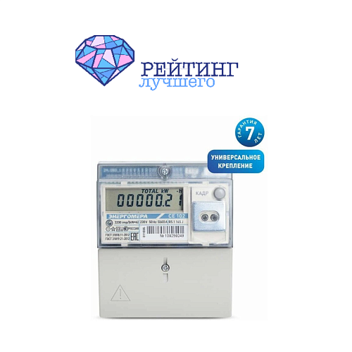 Прямое подключение через два провода и электромеханический принцип работы делают его использование максимально простым. Однофазный, с классом точности 1.0, он всегда будет честен с вами. Время не врет, и «Энергомера» тоже. Включенный в Госреестр, он чувствует себя уверенно и официально признанным. Он имеет класс защиты 51, так что он выдержит любые невзгоды. Можно быть спокойным за его сохранность. И с этим прибором можно забыть про все сложности, связанные с учетными задачами.
