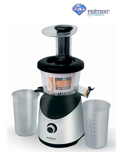 Starwind SJ3212 – это шнековая соковыжималка вертикального типа, которая разработана для получения свежевыжатого сока из ингредиентов различной степени твердости. Модель оснащена небольшими прорезиненными ножками, которые обеспечивают устойчивость прибора в запущенном состоянии. Соковыжималка характеризуется мощностью 200 Вт и имеет одну скорость вращения. Ёмкость для сока и мякоти составляет 0,8 литра каждая. Корпус рассматриваемого устройства изготовлен из высококачественного алюминия совместно с пластиковыми элементами. Также предусмотрена система «капля-стоп», которая не позволяет жидкости попасть на рбочую поверхность.