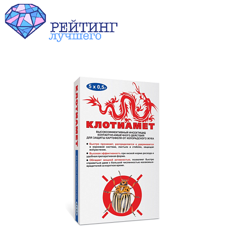 "Клотиамет" - это средство для защиты картофеля от колорадского жука. Оно известно своим контактно-кишечным действием. Это значит, что средство работает двумя способами: оно не только убивает насекомых при прямом контакте, но и действует внутренне, когда жуки питаются обработанными растениями. Особенность "Клотиамета" в том, что он защищает все растение. После обработки, средство распространяется по всем частям картофеля, обеспечивая надежную защиту от вредителей.