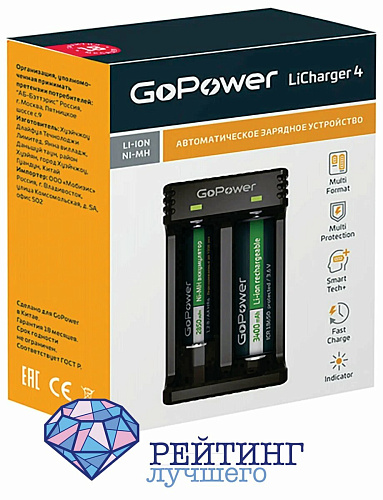 GoPower 00-00015360 LiCharger 4 дополнит набор инструментов любого любителя или профессионала, поскольку оно наделено лучшими функциями, обеспечивающими эффективность и безопасность подзарядки.