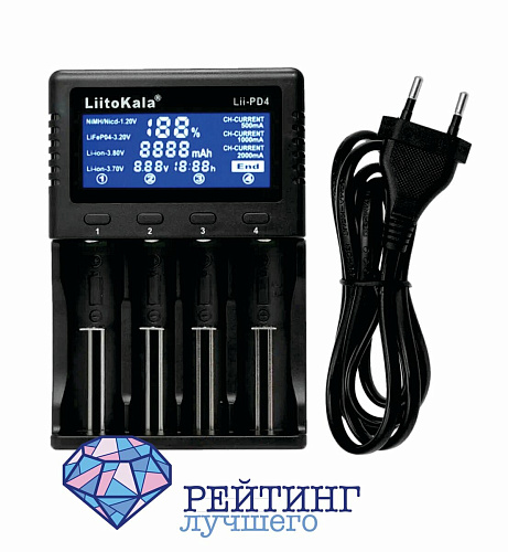 LiitoKala Lii-PD4 — это небольшое, легкое зарядное устройство с четырьмя слотами для аккумуляторов имеет защиту от переполюсовки, перезаряда и короткого замыкания. Устройство оснащено большим ЖК-дисплеем, на котором отображается информация о процессе, а также оставшееся время и напряжение.