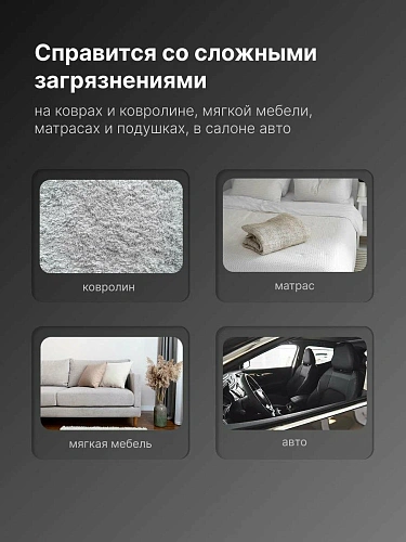Этот пылесос подходит для диванов, кресел, ковров, матрасов и тканевых поверхностей, включая детские кровати и обивку автомобиля. Он одинаково эффективен при глубокой уборке и регулярном уходе.
