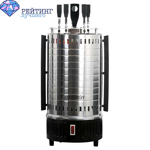Привлекающая своим лаконичным дизайном, эта универсальная шашлычница предназначена для быстрого приготовления шашлыков и сосисок. Она обладает мощностью 1000 Вт и оснащена 5 шампурами, которые за счет постоянного вращения обеспечивают хорошо прожаренное мясо. Ее раздвижной защитный кожух позволяет отслеживать процесс приготовления и при этом избегать ожогов, вызванных разбрызгиванием горячего жира. Здесь есть поддон для сбора капель, а вот таймер тут не предусмотрен. Корпус состоит из комбинированных материалов, таких как сталь и алюминий, а потому легко прослужит несколько лет. Вы легко найдете Energy НЕВА-1 место на своей кухне, потому как она имеет весьма скромные размеры и малый вес.