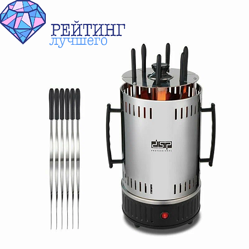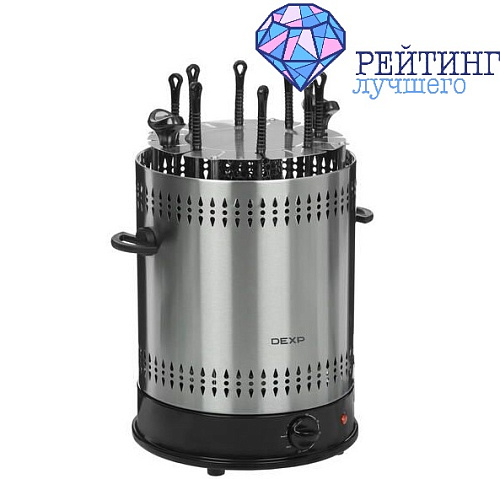 Второй продукт, который мы выбрали - это жаровня DELTA DL-6700. Здесь мы находим вращающийся вертикальный тен, установленный в центральной части машины, который обеспечивает мощность 1000 Вт. Благодаря вращению на 360 градусов приготовление пищи происходит равномерно независимо от того, что вы решили пожарить: курицу, свинину или говядину. На передней панели имеется кнопка вкл/вкл, а такие функции, как таймер и выбор температуры здесь отсутствуют. Жир будет стекать непосредственно в специальный стальной поддон, который можно мыть в посудомоечной машине. Наконец, отметим, что шашлычницу легко перемещать благодаря небольшому весу, можно хранить в шкафу за счет компактных размеров. В комплекте идут 5 шампуров.