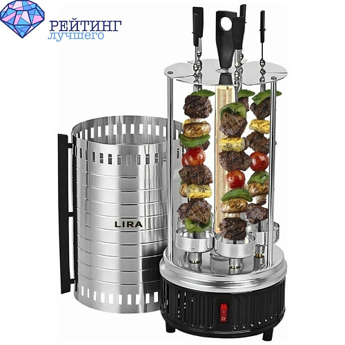 Эта вертикальная жаровня относится к самым простым и бюджетным и предназначена для частных лиц. Она создана в основном для приготовления шашлыка, но также позволяет жарить овощи. Изготовленная из алюминия, она рассчитана на долгий срок службы и способствует равномерному распределению тепла внутри корпуса. Здесь вы найдете 5 вращающихся шампуров и поддон для жира, который поможет вам избавиться от необходимости чистить устройство с особым усилием. Мощность Lira LR 1305 составляет 1000 Вт, а потому она достаточно быстро жарит мясо. Вы легко освоите механизм управления, потому как он представлен всего одной кнопкой, и при желании переставите устройство в другое место, потому как весит оно меньше 2 кг.