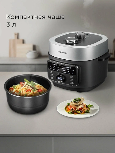 Мультиварка-скороварка REDMOND Fast Chef MP112 — это формат «поставила продукты, нажала кнопку и пошла жить дальше», но с важной поправкой: здесь есть давление, а значит многие блюда получаются в разы быстрее, чем на плите. По задумке производителя MP112 ускоряет готовку до 3 раз по сравнению с плитой и до 2 раз по сравнению с обычной мультиваркой. В этом обзоре разберём устройство, управление, программы, практику в быту и нюансы ухода — так, чтобы после прочтения было понятно, нужна ли такая техника именно вам.