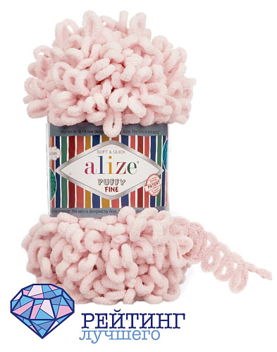 Необычная пряжа бренда Alize Puffy Fine выглядит как нитка с кудряшками. Эти кудряшки ничто иное, как уже готовы петли размером 27 миллиметров, что позволяет вязать без использования спиц или крючка. Из такого волокна будут выходить красивые объемные теплые вещи, а также предметы интерьера. В наборе поставляются пять мотков, чтобы вам хватило на самую объемную вещь. Для выполнения сложных узоров на пледе может понадобиться от семи до двадцати восьми мотков, при этом размеры конечного изделия будут составлять 100х100 до 200х200 сантиметров. В случае простых узоров количество материала уменьшается от шести до двадцати одного мотка с теми же размерами готового изделия. Пряжа мягкая на ощупь, представлена в разных цветах для воплощения любой фантазии. Сделана из стопроцентного полиэстера высшего класса, что позволяет держать нитям заданную форму. Они не линяют, не выгорают, не садятся, и при этом приятные к телу. За счет полностью синтетического состава, на ней не образуются катышки, поэтому предметы будут долго сохранять внешний вид. С ней вы сможете связать шарфы и шапки, коврики и покрывала, и даже игрушки вместе с детьми от пяти лет. В ста граммах материала содержится четырнадцать метров, что свидетельствует о большой толщине. Покупатели оставляют в основном положительные отзывы. В качестве достоинств выделяют легкость вязания, качество материала, рекомендуют его к покупке. Отмечают, что цвет немного отличается от представленного на фотографиях.